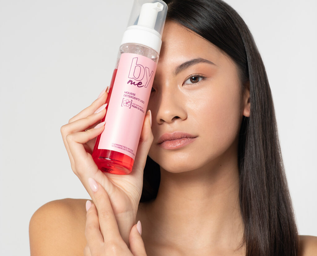 Un detergente viso che si trasforma in una ricca e corposa mousse di colore rosa. Ideale per